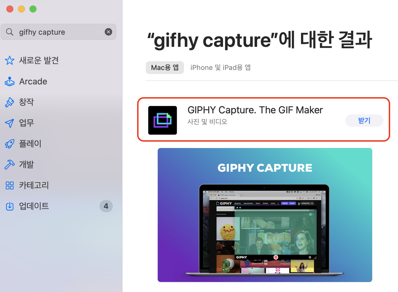 App Store에서 GIPHY Capture를 검색하여 설치해주세요. 무료 어플이고 회원가입 없이도 충분히 사용할 수 있습니다!
