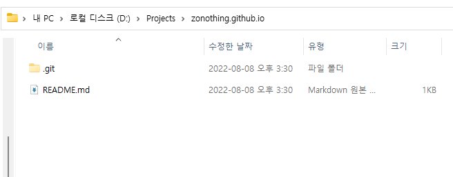 정상적으로 원하는 경로에 폴더가 생성된 것을 확인할 수 있습니다. 아직은 README.md 파일만 존재합니다.