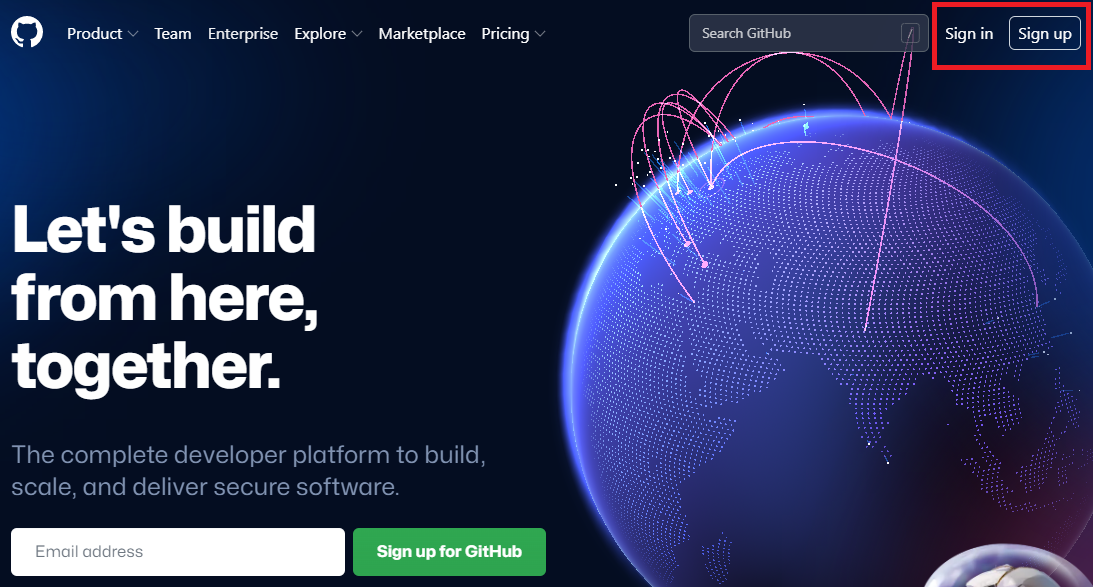 우선 GitHub에 접속해야겠죠? 접속한 뒤 계정이 이미 있다면 Sign in, 계정이 아직 없다면 Sign up을 통해 만들어줍니다.