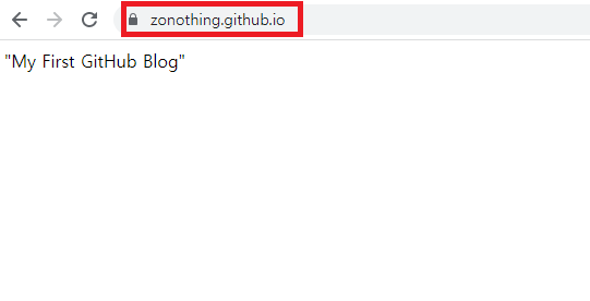 놀랍게도 이제 기본적인 GitHub 블로그가 완성되었습니다! username.github.io 주소를 입력해보면 My First GitHub Blog라는 문구가 출력이 되는 블로그로 정상 연결됩니다.
