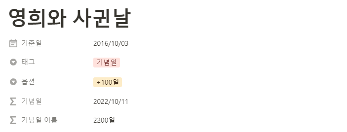 주의해야할 점은 오늘 기준 가까운 미래의 기념일만 표시된다는 점입니다. 예를들어 +100일 기념일의 경우 가까운 600일은 표시되어도 700일은 표시되지않습니다.