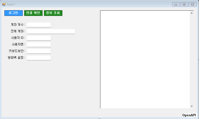 서론 C# 으로 키움증권 Open API 활용하여 프로그램을 구현하는 방법에 대한 포스팅 3탄입니다. 이번엔 좀 더 응용된 기능을 구현해보려고 합니다. 우선 선택한 계좌의 예수금 조회 를 추가하려고 합니다. 이후 주..