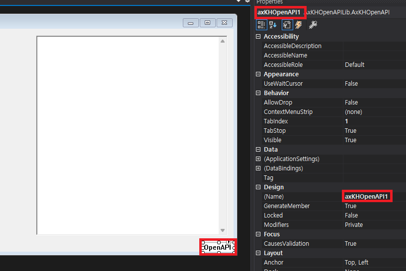 axKHOpenAPI1은 1번째 포스팅에서 추가했던 KHOpenAPI Control의 Name 입니다.