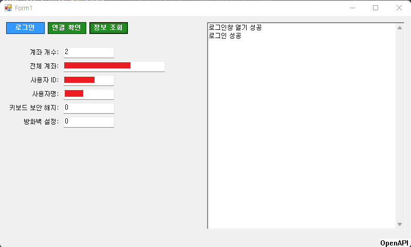 키움증권 Open API를 C# Winform을 통해 구현하는 방법에 대해서 포스팅을 이어가고 있습니다. 이번 포스팅에서는 로그인부터 로그인 계정 정보를 가져오는 부분까지였습니다. 다음 포스팅부터 본격적으로 증권 데이터를 읽어오는 동작에 대해서 포스팅을 이어가겠습니다.